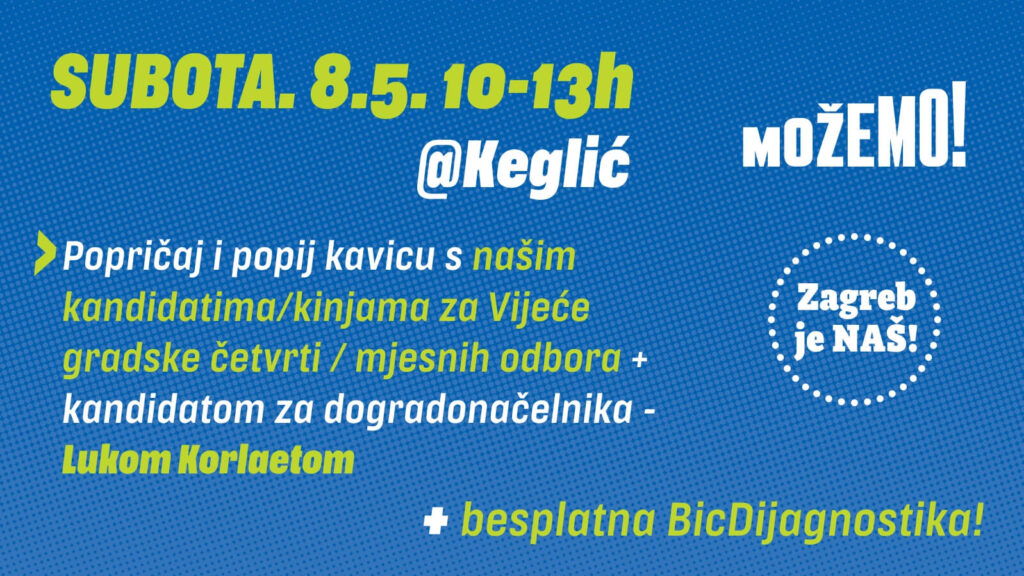 Uz to, pridužit će nam se i LUKA KORLAET, kandidat Zagreb je NAŠ i Možemo – politička platforma za dogradonačelnika s kojim možete porazgovarati o obnovi Zagreba od potresa (i mnogim drugim temama)!
